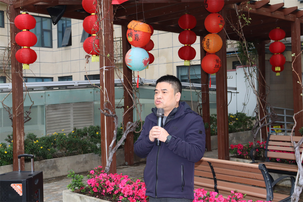 活动现场暖意融融,秩序井然,每一位参与者都满怀热忱。医院副院长朱磊发表致辞,他说到,阳光花园是长者日常休憩、康复调养的重要空间,一抹绿意、一缕花香,都能为长者的身心带来舒缓与慰藉。希望通过绿植美化医院环境,为长者打造更具疗愈感的休憩空间,也希望借助花坛承包养护的形式,增强各科室的团队凝聚力与责任意识,让“守护”不仅体现在临床诊疗中,更渗透到医院的每一个角落。他表达了对长者安康的牵挂,对团队成长的期许,同时也为整场活动注入了温暖的力量。